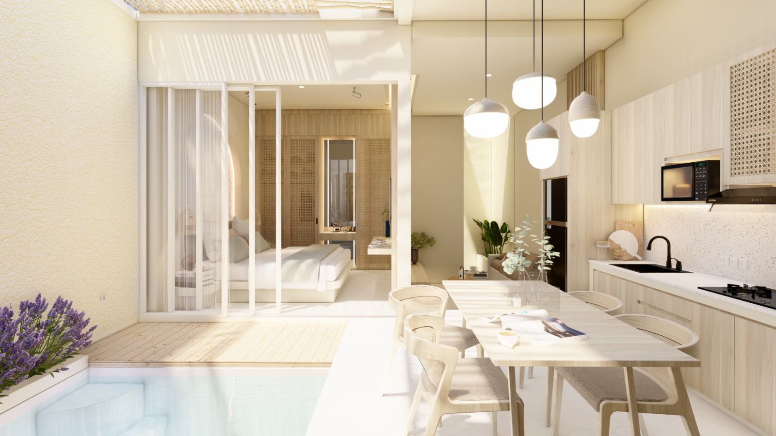 Pembangunan Smart Luxury Villa @Uluwatu menggunakan konsep “Santorini Open Space” yang membuat penghuninya merasakan kenyamanan dan keindahan dalam satu tempat. Unitnya juga dibangun dengan arsitektur modern minimalis disertai private pool yang menjawab kebutuhan kamu yang ingin liburan sekeluarga.